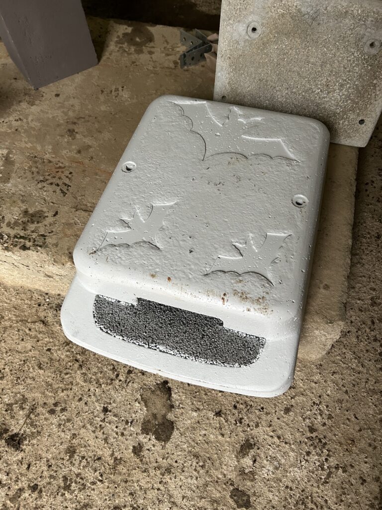 Ein altes an der Neiße gelegenes ungenutztes, ehemaliges Pumpenhäuschen hat nun eine neue Bestimmung gefunden. Es wurde eine schmale Einflugöffnung in der Wand geschaffen und diese vor anderen Eindringlingen, wie z. B. Marder und Mäusen, abgesichert. Im März 2025 wurde nun durch Mitarbeiter des Bauhofs Görlitz von uns gekauften Fledermauskästen und -steine angebracht. So bieten nun 3 Fledermaussteine, 3 Flachkästen (2x nach Dr. Nagel, 1x für Kleinfeldermäuse) und eine Ganzjahresquartier nun viele verschiedene Möglichkeiten um hier gepflegt im Neißetal abzuhängen.