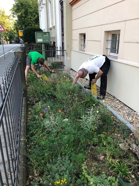Im Mai wurden dann von vielen fleißigen Helferinnen und Helfern die ca. 200 Stauden gepflanzt, die Komposterde etwas eingearbeitet und eine Ausaat von Ausdauernden Lein, Rapunzel-Glockenblumen und Wiesen-Schlüsselnblumen vorgenommen. Um die Lücken zwischen den Stauden schnell zu schließen. Anschließend wurde erst mal gut gewässert. Auszug aus der Liste der Stauden: Gelber Lauch, Berg-Steinkraut, Ochsenauge, Sauerdorn, Knäuel-Glockenblume, Pfirsich-Glockenblume, Kalk-Aster, Eberraute, Bunte Wolfsmilch, Strandflieder, Kuhschelle, Apotheker-Rose, Gelbe Skabiose, Reiher-Federgras.
