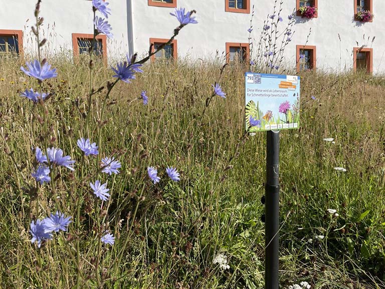 Das Internationale Begegnungszentrum St. Marienthal in Ostritz setzt sich für Mnesch und Kultur ein. Eine Wiesenfläche auf dem Klostergelände wird insektenfreundlich bewirtschaftet als offizielle Schmetterlingswiese. Mitte September wurde die bereits nach kurzer Zeit sich eingestellte Vielfalt an Pflanzen durch die gezielte Einsaat einer Mischung mit vielen zusätzlichen Einzelarten ergänzt. Wir sind gespannt wie viele der neuen Arten sich dort in den nächsten Jahren etablieren können.