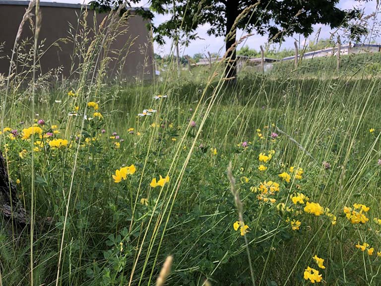 Durch eine engagierte Lehrerein der Freien Evangelischen Oberschule Görlitz und einen engagierten Hausmeister werden nun einige Wiesenschnitte am Gewerbepark am Klinikum nur noch zweimal jährlich schonend gesenst. Im Frühjahr 2020 wurden einige kleine Fläche per Hand vertikutiert und regionale Saatmischung aufgebracht. Das Ergebnis kann sich sehen lassen!