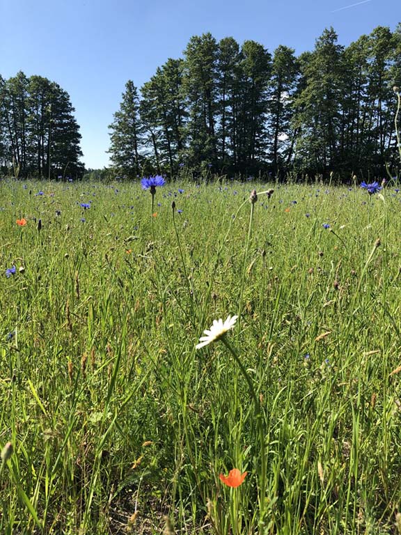 Ein Eigentümer von ein paar Hektar Acker- und Gründland kam 2020 auf uns zu, da er gerne der Natur etwas zurückgeben möchte. Gemeinsam mit der zu dem Zeitpunkt bewirtschaftenden Agrargenossenschaft Daubitz und dem Deutschen Verband für Landschaftpflege Sachsen konnten wir eine schrittweise Umnutzung von ehemaligen Acker und intensiven Grünland zu nun 1,5 Hektar Blumenwiese erreichen, welche nun durch die Familie Jakob aus Hähnichen gepflegt wird. Es ist wirklich erstaunlich wie schnell und gut sich die ehemalige Mais- und Wintergerstenwüste sich entwickelt hat, auch wenn es hier manchen Rückschlag (eine Frühjahrsansaat wurde durch Ackerunkräuter überwuchert) und Hürden zu überwinden gab. Ein Besuch >HIER< lohnt sich auf jeden Fall und meist sieht man auch Kraniche in der Nähe. Auch hat sich auf dem Standort gezeigt, dass eine Herbstansaat deutlich besser funktioniert als eine Frühjahrsansaat.