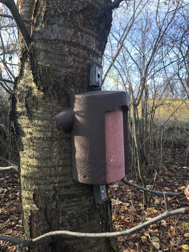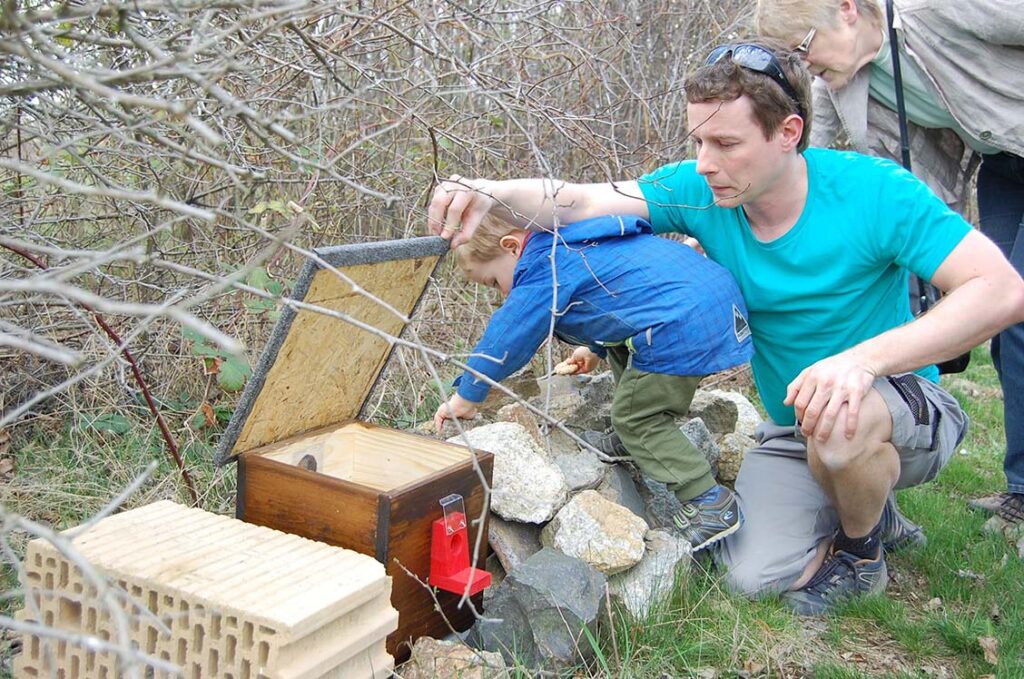 Über Patenschaften und Spenden konnten wir bereits über 50 Nistkästen für Vögel (mehrere Typen aus Holz oder Holzbeton) und 5 Fledermauskästen installieren, welche bisher sehr dankbar von Fledermäusen, Vögeln, Hornissen, Feldwespen und Mäusen angenommen wurden. Im Frühjahr 2019 bauten wir Niststände für Nisthilfen für die Rote Mauerbiene (Insekt des Jahres 2019!), die seitdem dort fleißig die Obstbäume bestäubt. Auch ein hunderte Kilogramm schwerer Steinhaufen für Reptilien wurde angelegt, was mit einem normalen PKW bei der örtlichen Hangneigung durchaus zum Kraftakt wurde.